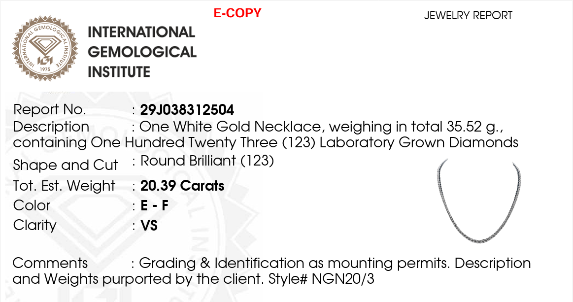 | Diamond Carat Weight | 20.39ctw |