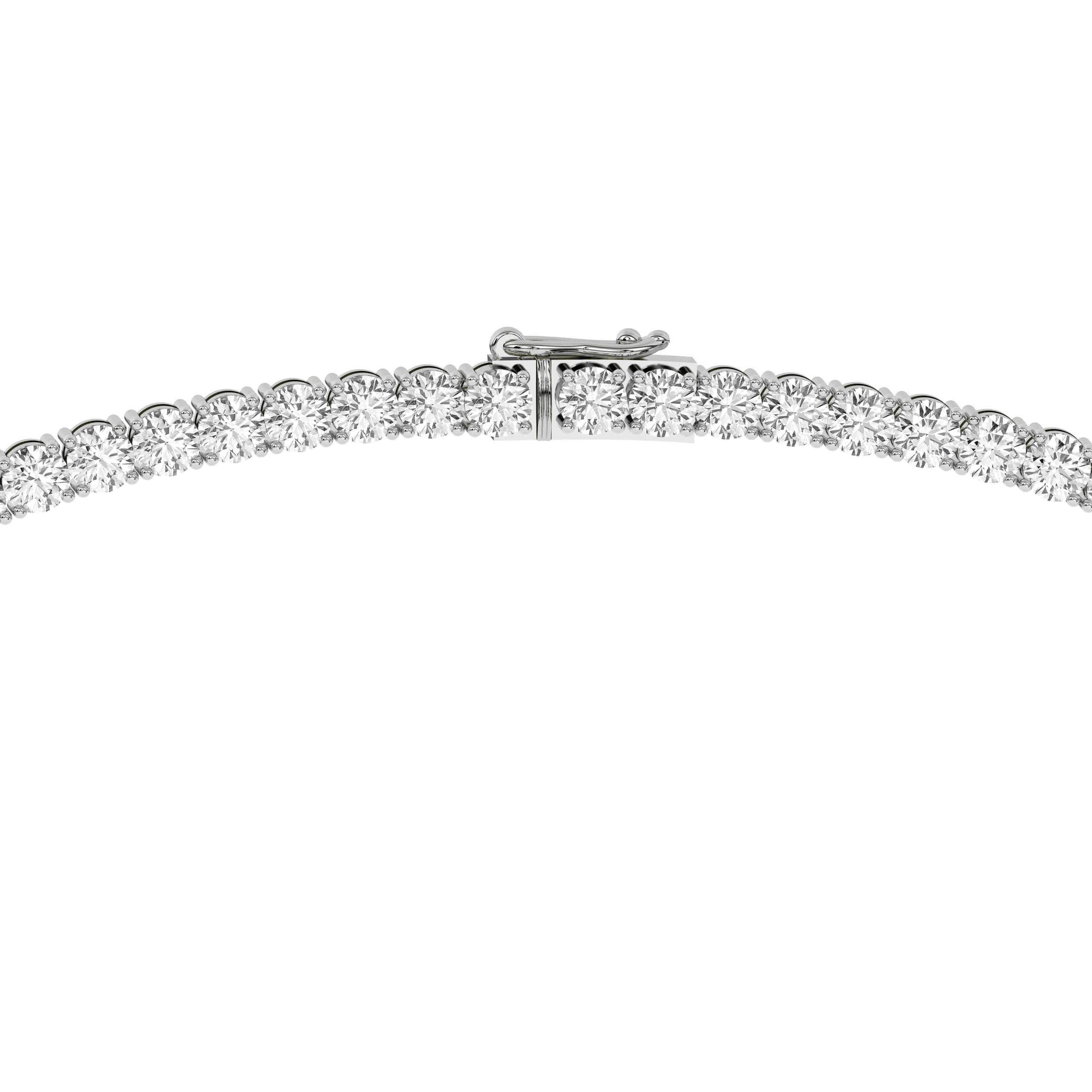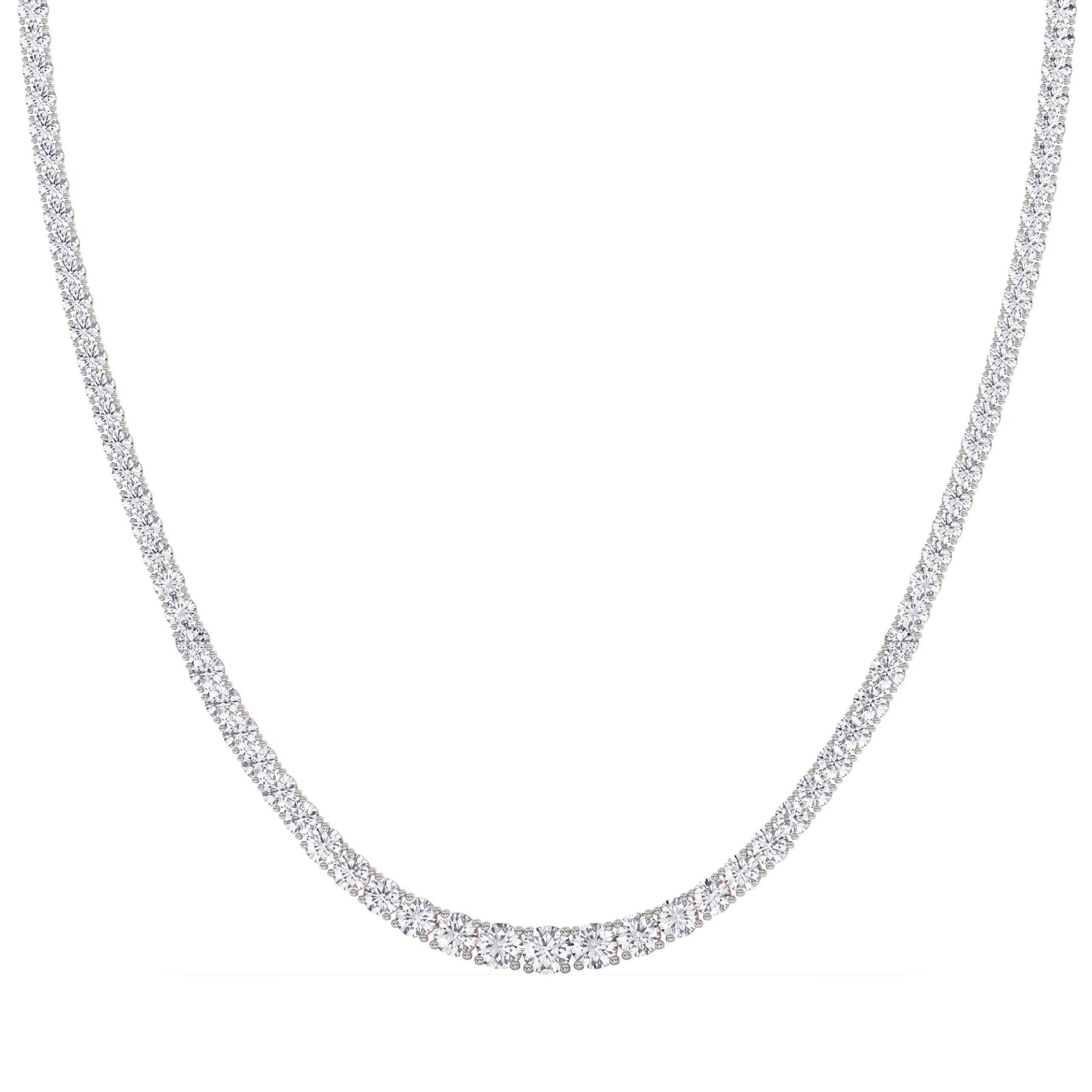 This 18-inch lab grown diamond tennis necklace features 20ctw of brilliant round diamonds set in polished 14k white gold. A timeless, high-end statement piece offering exceptional sparkle, sustainable luxury, and modern elegance—perfect for everyday sophistication or special occasions.