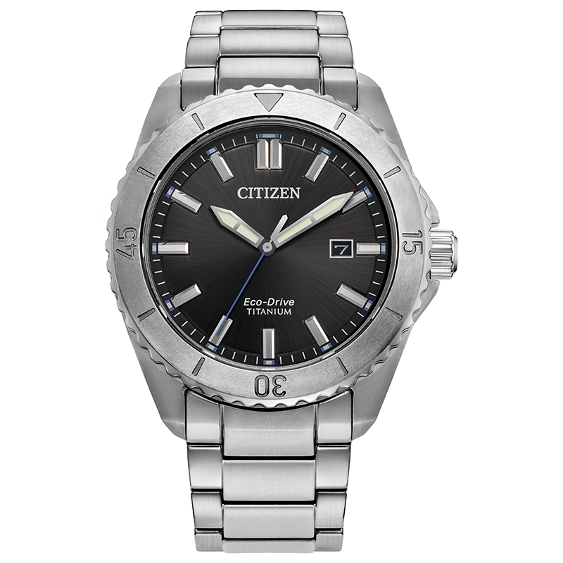 Citizen Brycen AW0150-53L features a 41mm Super Titanium case and bracelet, delivering lightweight strength and scratch resistance. Powered by Eco-Drive, it runs on light with no battery changes. A bold blue dial, date display, and sporty bezel make this men’s watch durable, modern, and everyday versatile, and reliable performance style.