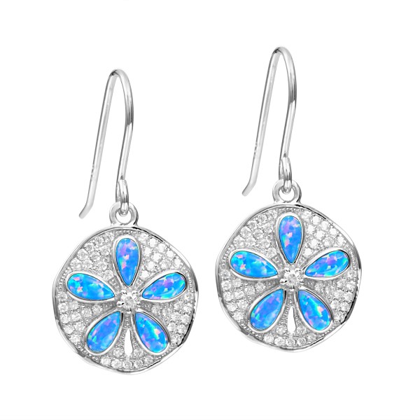 Sterling silver sand dollar earrings with (5) pear shaped synthetic fiery black opal, and CZs surrounding. Complete with french wire tops.
